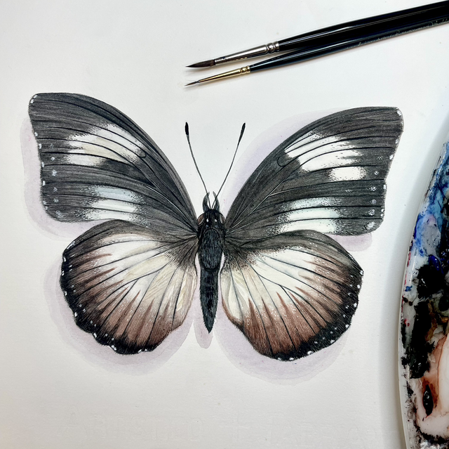 Painted on arches paper, this is unframed. Arrives wrapped with card backing. Paper dimensions 25 x 25cm.